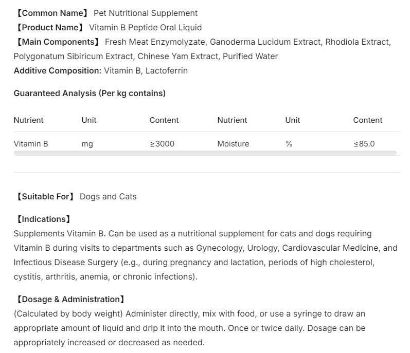 Nuestro multivitamínico especializado para mascotas de fuerza clínica está desarrollado científicamente para abordar las deficiencias nutricionales en perros y gatos anémicos. Combinando los principios de la medicina tradicional china con la ciencia veterinaria moderna, esta fórmula avanzada brinda apoyo integral a las mascotas que padecen anemia por deficiencia de hierro y trastornos sanguíneos relacionados.